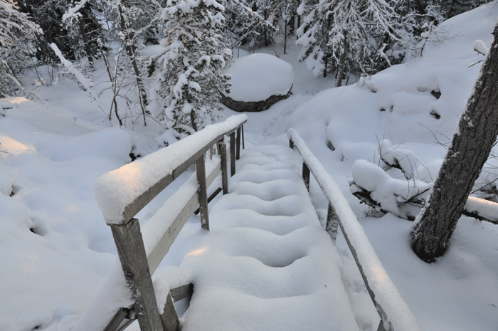 Man får gå genom husvagnscampingen och sen ta trappan.